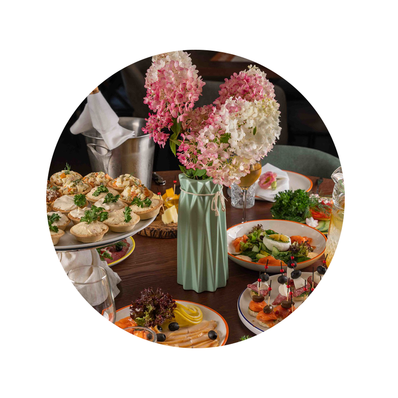 Мы поможем с меню, расстановкой и сервировкой.